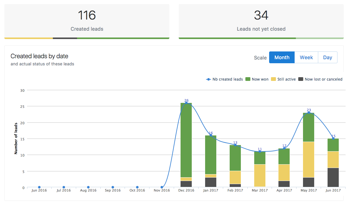 - you can filter the active leads by date of creation (those that are still active and have been create a long time ago are pending for too long!).