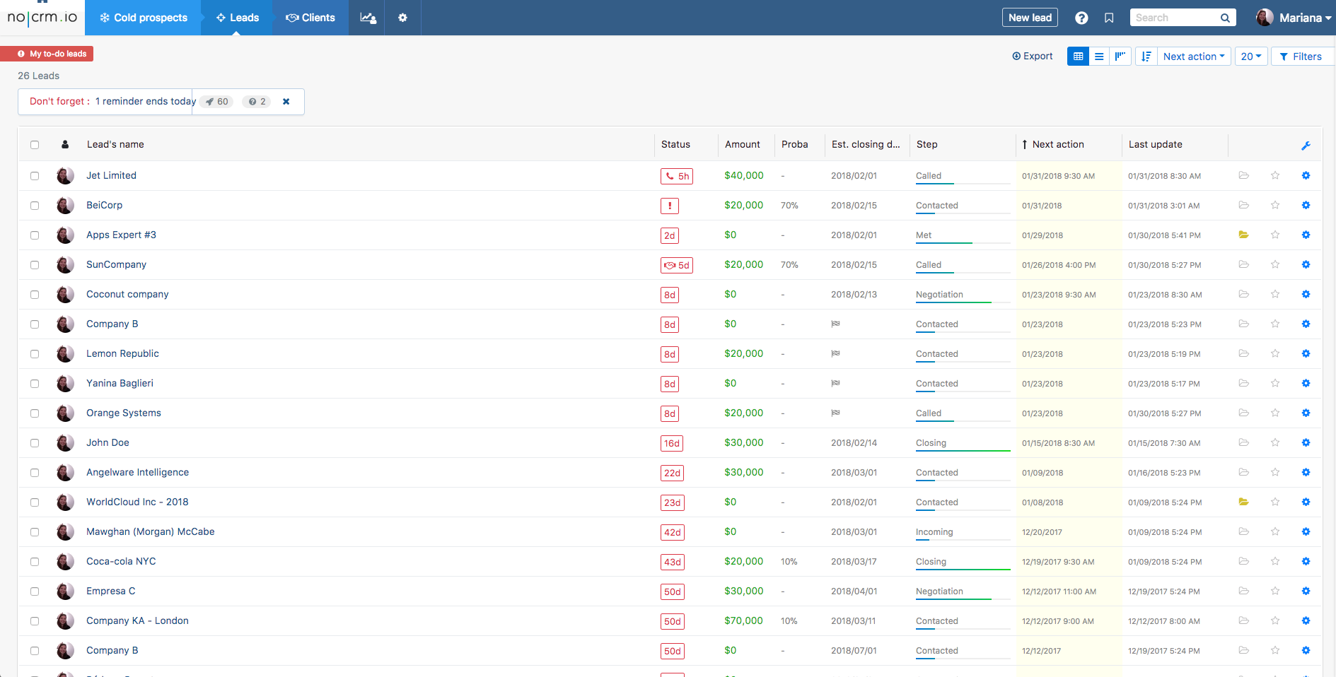 Als Vertriebsmitarbeiter ist es nur sinnvoll, Ihre To-Do-Liste als Startseite zu haben. Sie möchten sich morgens in Ihre Lead-Management-Software einloggen, und jetzt sofort, was Sie an diesem Tag tun müssen.