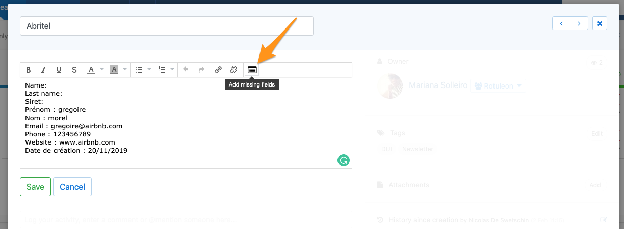 Incluso, si has creado leads que no contienen todos los campos predefinidos que quieres, puedes añadirlos con un click;