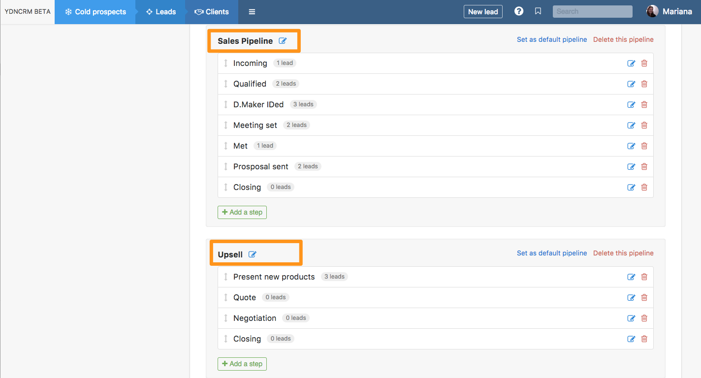 N.B.: L'objectif n'est pas d'avoir des dizaines de pipelines différentes. Créez plusieurs pipelines que quand il y a une grande différence entre le processus de vente d'un produit/service et un autre!