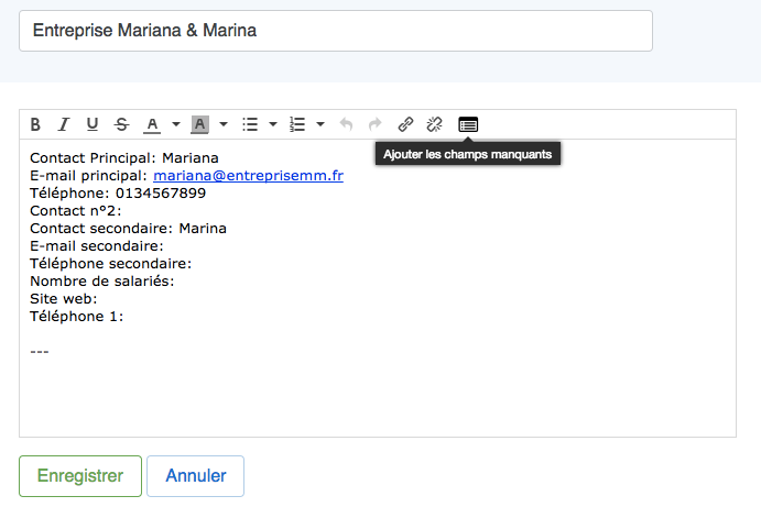 Pour éviter les problèmes habituels causés par l’utilisation de nombreux champs lors de la création d’opportunités, ces informations sont rassemblées dans un seul champ de texte de grande taille.
