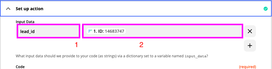 3. Imposta l'Action: Inserisci “lead_id” nel primo campo e trova il valore dell'ID per il secondo campo