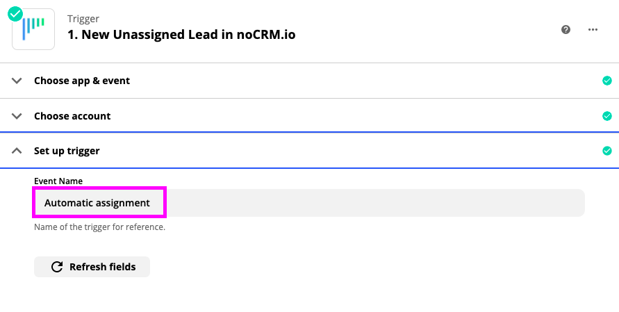 4. Imposta il trigger: Dai un titolo all'evento e digita: Automatic assignment