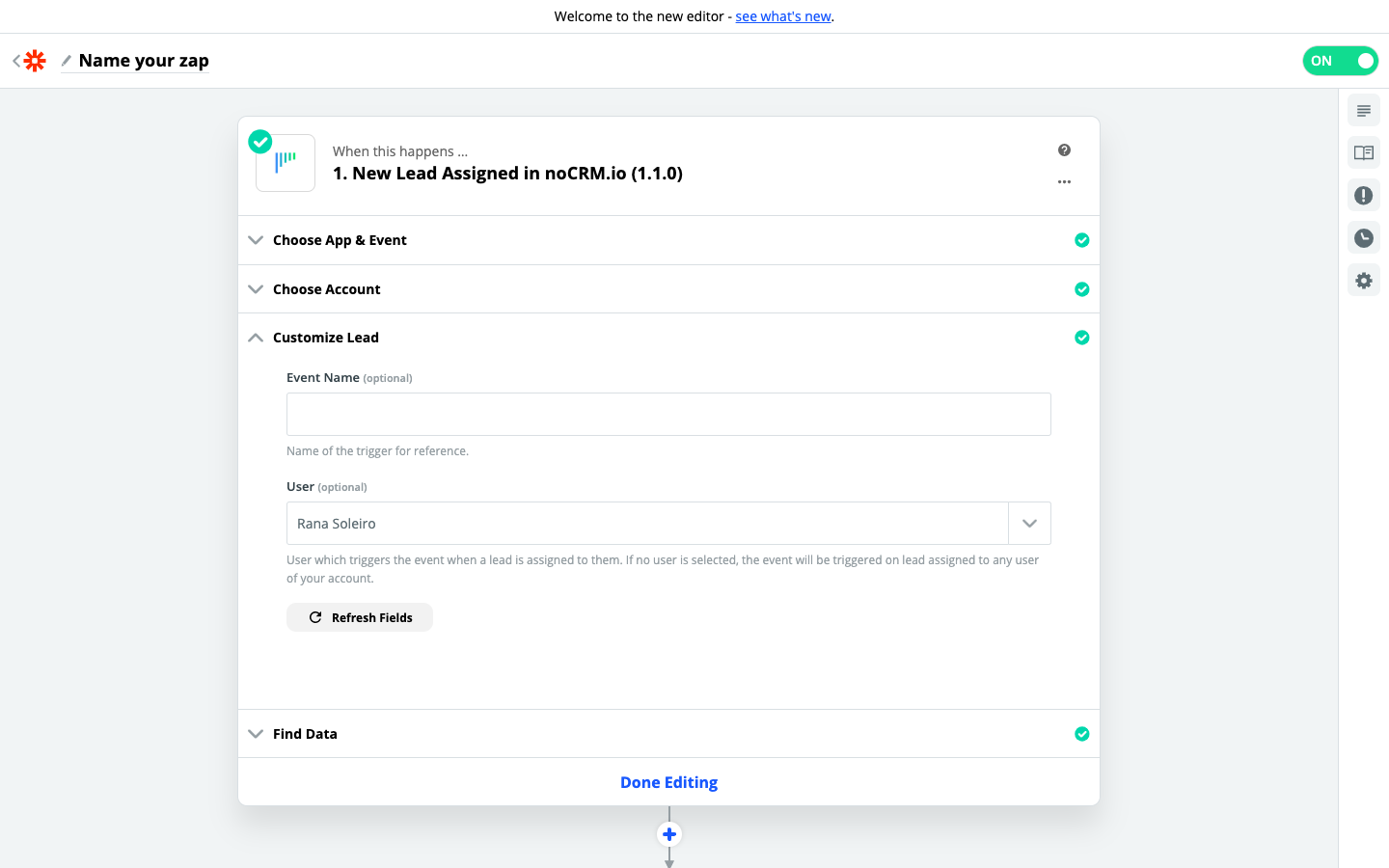 2. Scegli il Trigger: New Lead Assigned