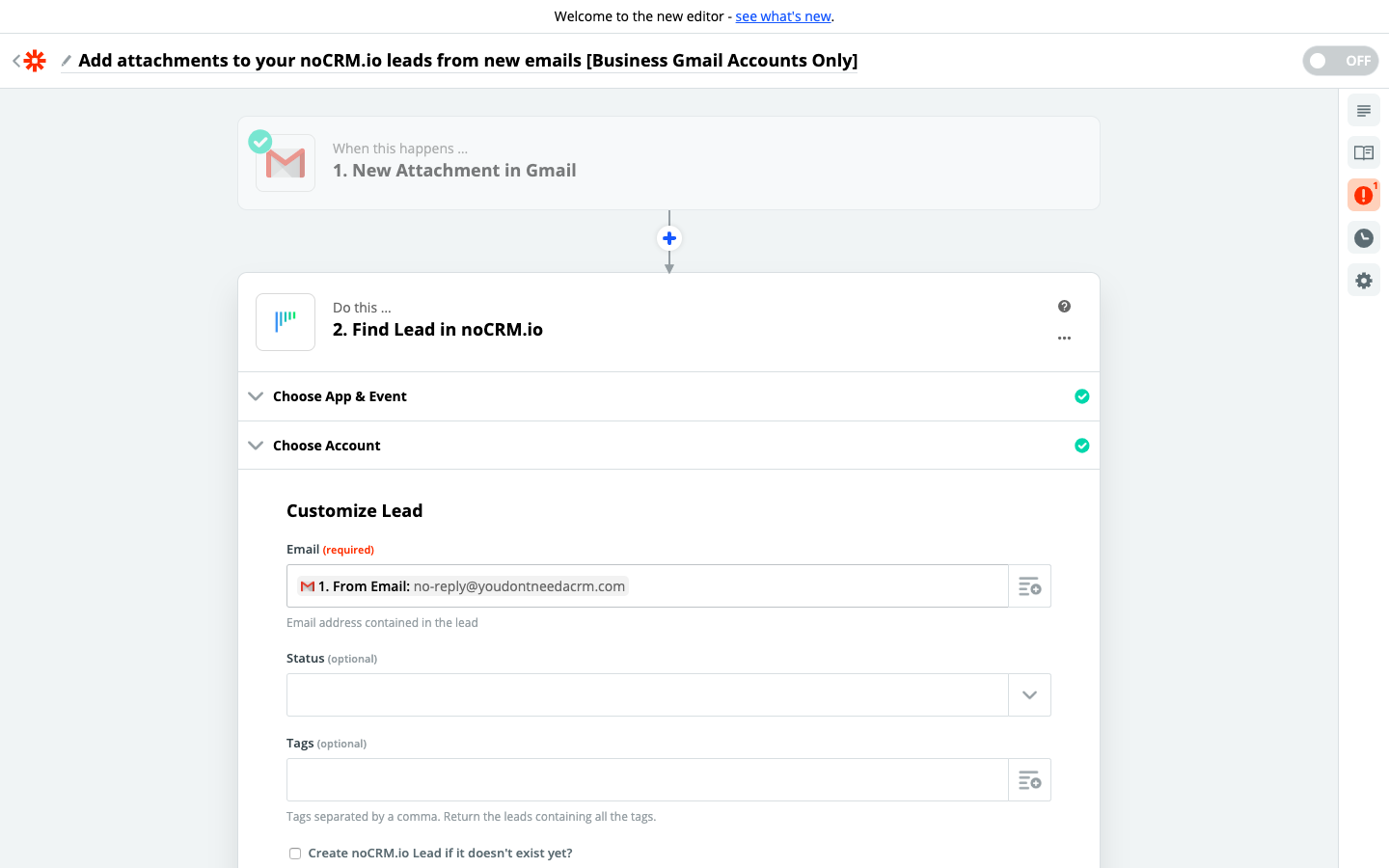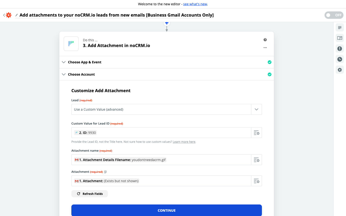 - Escolha a 2a app de ação: propipelines.com 2.Escolha a ação: Add Attachment