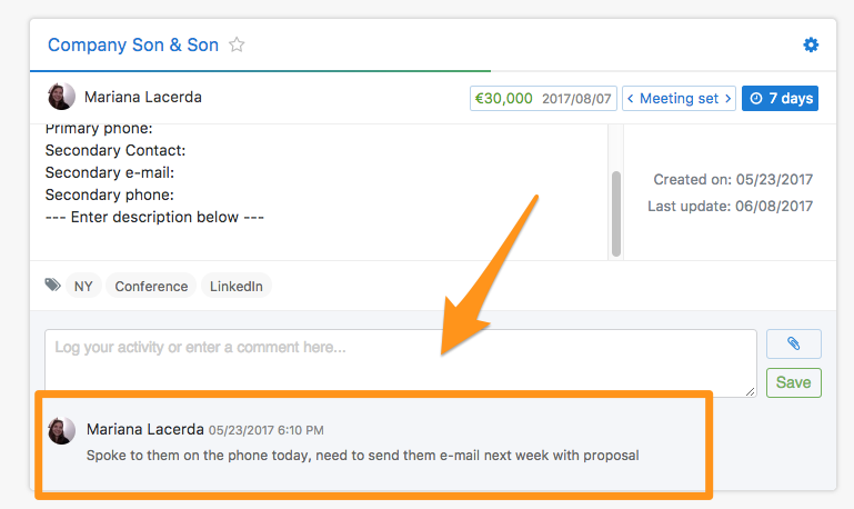 É muito importante indicar o que acabou de realizar com um lead para poder saber o que foi fazendo, e qual a próxima ação a ser realizada.