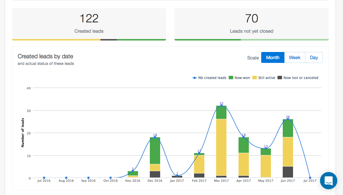 Благодаря возможности отслеживать поток активности и статистикам, руководители могут следить за работой своих команд и менеджеров по продажам.