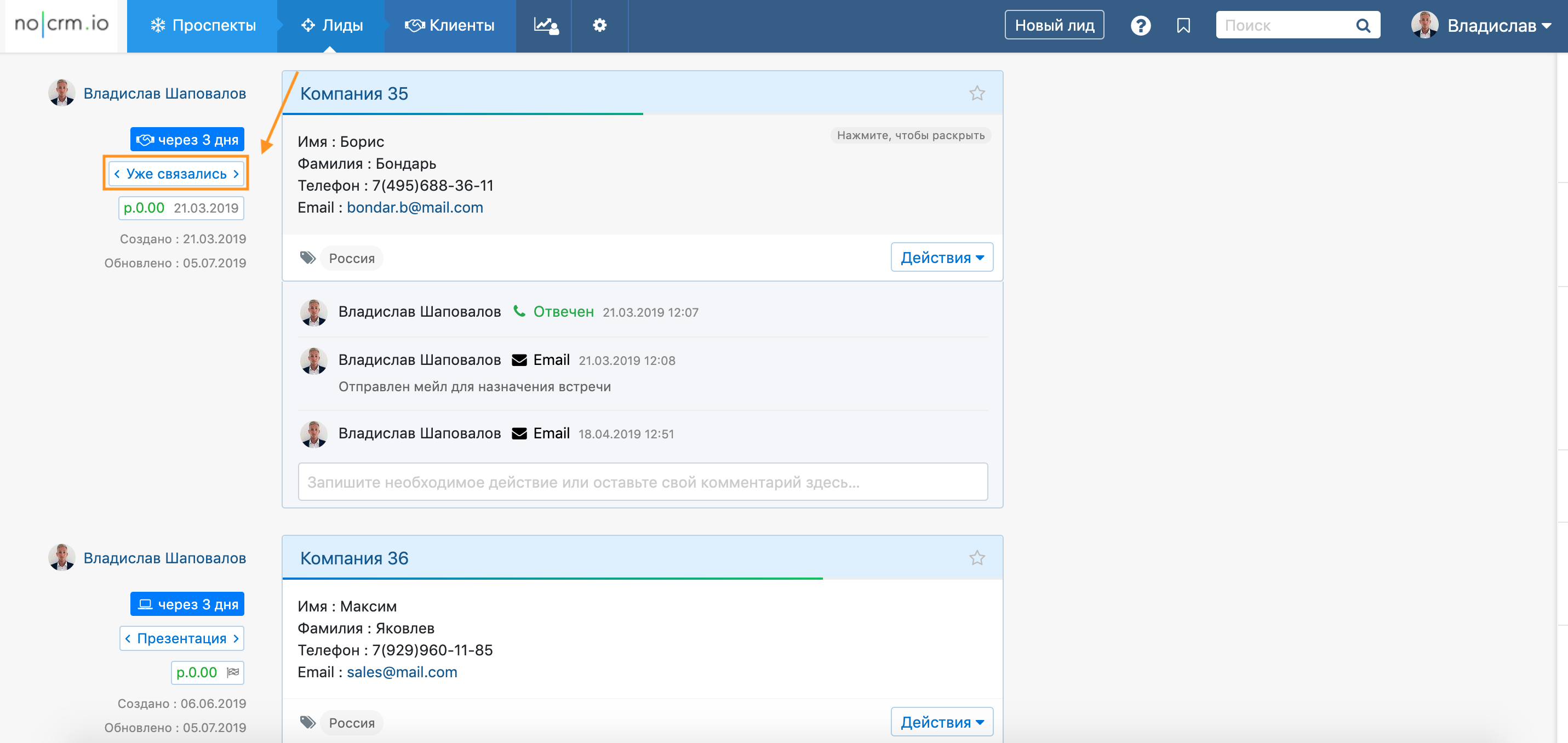 Компактный режим также показывает вам на каком этапе находится тот или иной лид.