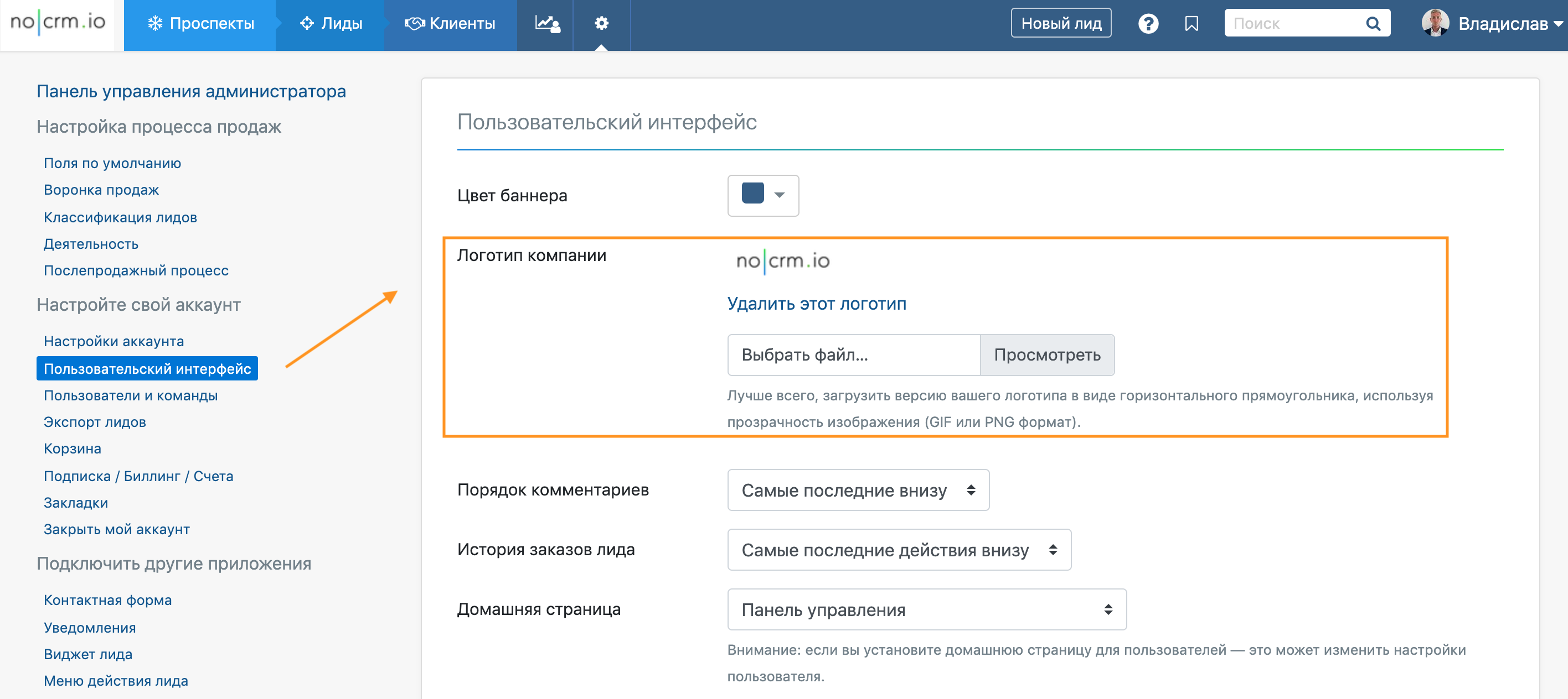 Для этого, Панель Администратора > Пользовательский интерфейс. Добавленный вами логотип заменит логотип propipelines.com в левом верхнем углу.