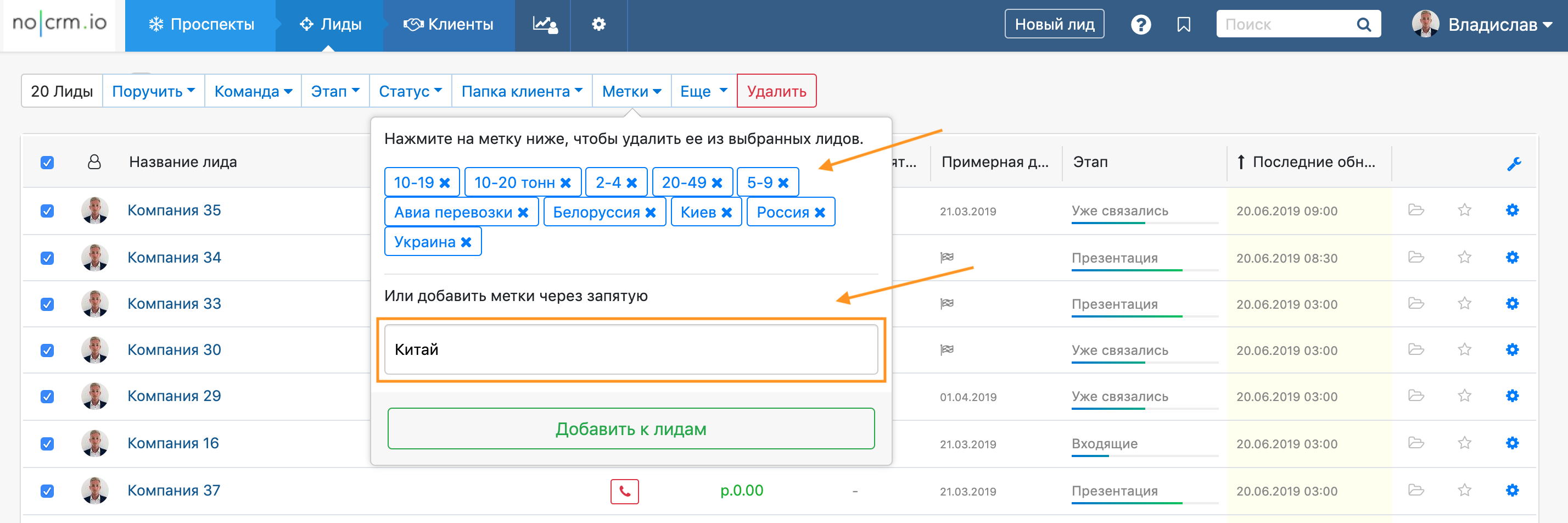 - Панель Администратора > Классификация лидов > удалите старый тег и добавьте новый.