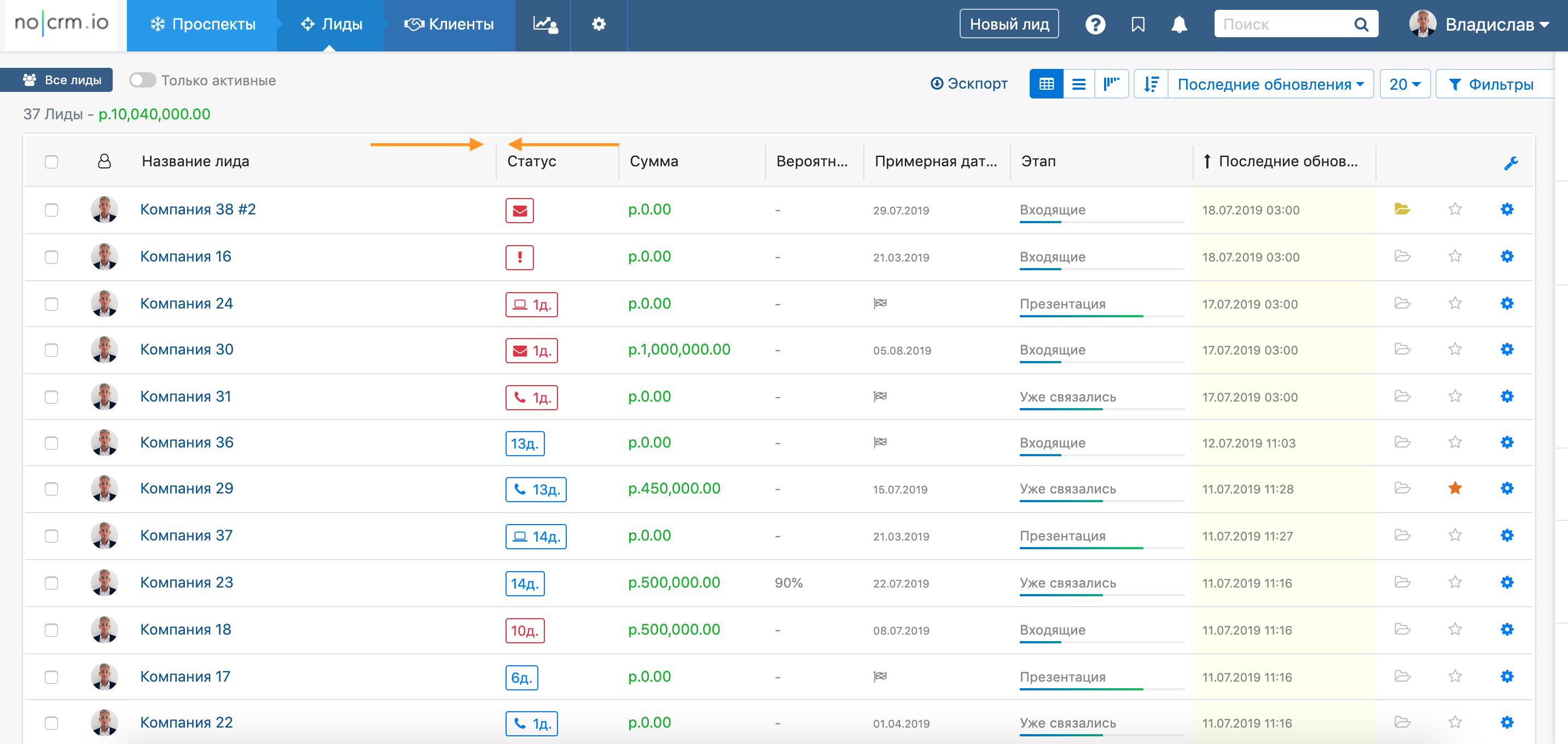 Кроме того, компактный режим отображает такую информацию, как название лидов, количество, вероятность, предполагаемая дата закрытия, и т.д.