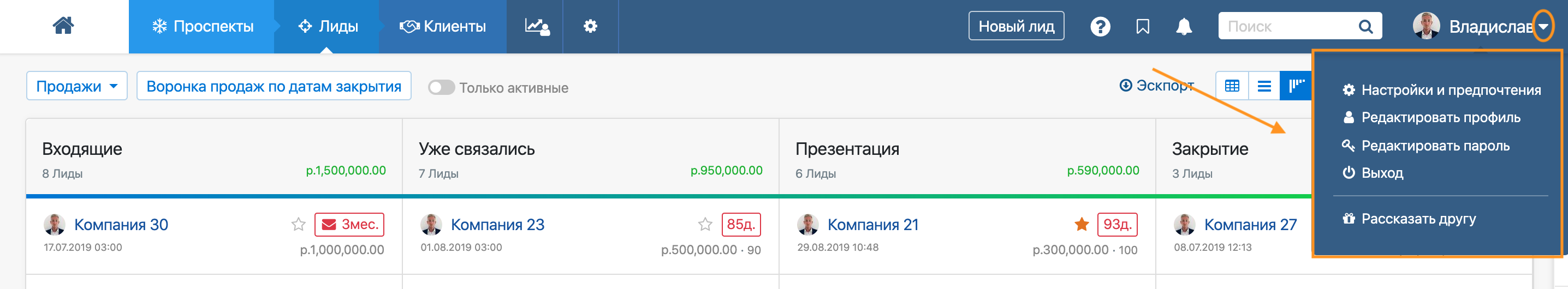 Независимо от того, открыли ли вы аккаунт или вас пригласили присоединиться к существующему аккаунту no CRM.io, у вас есть свои настройки профиля : https://NameOfYourAccount.propipelines.com/profile/settings