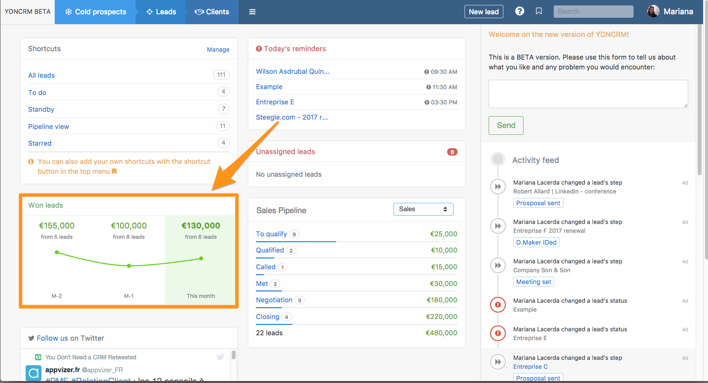 На Домашней странице вашего аккаунта, у вас есть доступ к графику выигранных лидов за последние 3 месяца.